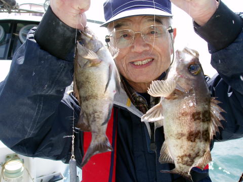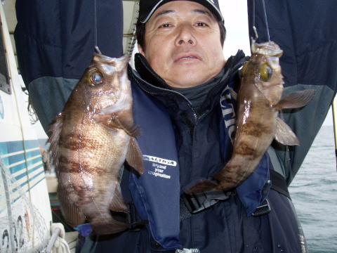 初乗船初挑戦の吉田様![]() 2010年 3月13日 良型のダブル〜 |