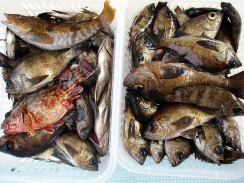 | 釣果 右上の尺オーバーメバル・・・青柳様が釣られました。 右下の尺オーバーアラカブ・・・富田様が釣られました。 ![]() 2010年 3月5日 中潮 |