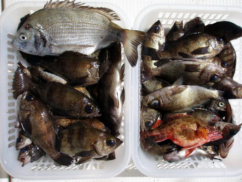 釣果 ![]() 2010年 4月5日 中潮 カゴが三個で3人分 |