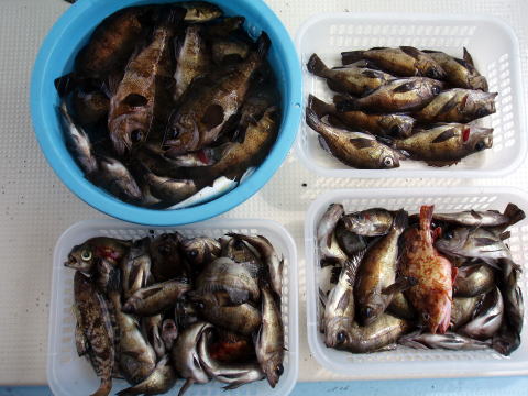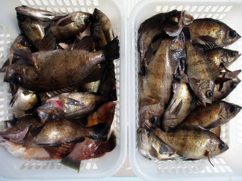 初乗船のお客様を含め今日もメバル釣りで出船。 今日は一日を通して穏やかな天気でした。 今日は朝から下げ潮の時合いタイムあり! が、しかし・・・ メバルの群れが見つからない・・・ 小さな群れを見つけ、ハイどうぞ〜 するとメバルの ダブル! しかし群れがすぐ散ってしまう・・・ 今日は、この繰り返しです。 大きな群れはなかなか 見つからず今日は苦労しました。 ほとんど単発です。 今日も大漁はなしです・・・ 1人分30匹位欲しいのですが、今日は活性薄 でした。 今日はイケスの部だけ写真をとらせて いただきました。 クーラーの部は写真撮ってません。 皆さんお疲れ様でした。 明日も頑張ります! |