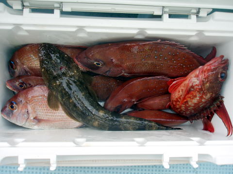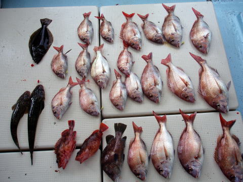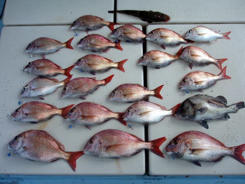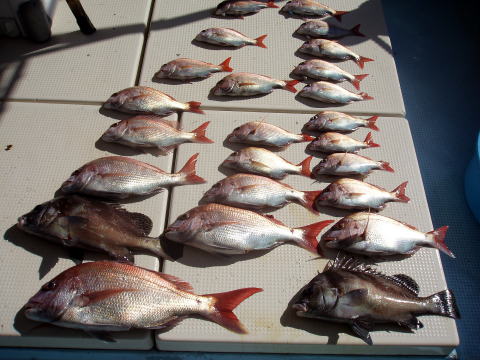 今日も格安真鯛で出船しました。 今日は昨日みたいな良型の真鯛は見れません でしたが、内容としては昨日と似た様な感じでした。 やはり下げ潮が良かったです。 棚の取り方によって釣果に差が出た一日となった みたいです。 1人で真鯛、ヒラメ、マゴチ、良型 アラカブなど釣りまくりの方もおられれば、残念ながら ボウズの方もおられました。 船長は昨日同様に 今日も一日キャビンの中から見てましたがシャクリを 入れてなかったお客様はグチが多かったみたいです ので次回は上の棚までシャクれば真鯛が釣れると 思います。 次回は頑張って下さい。 今日乗船の皆さんお疲れ様でした。 13日に水まわりの修理でドック入りします。 修理の内容次第では数日休船になるかもです。 ご迷惑おかけします。 |