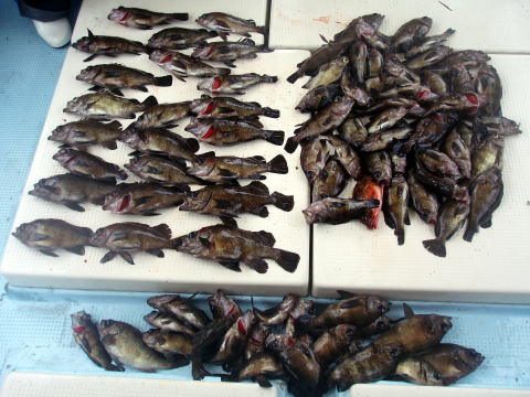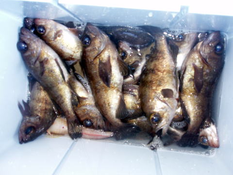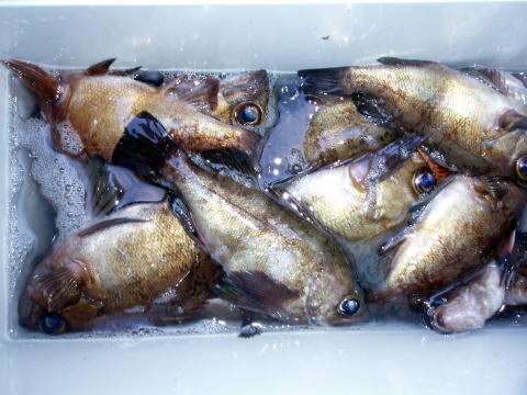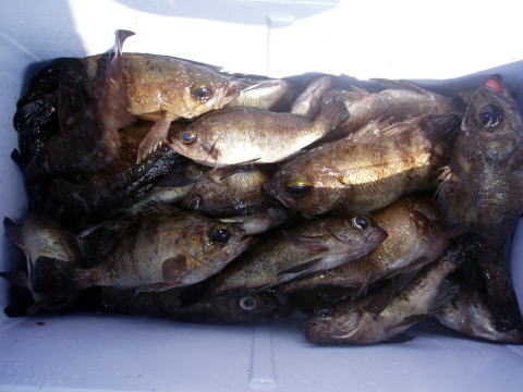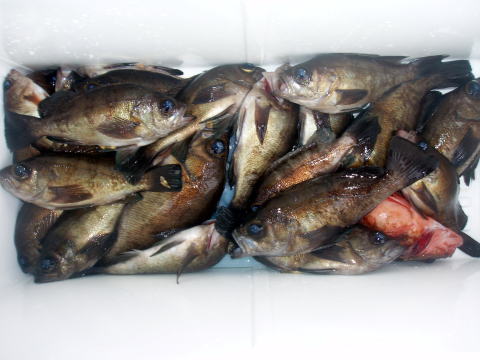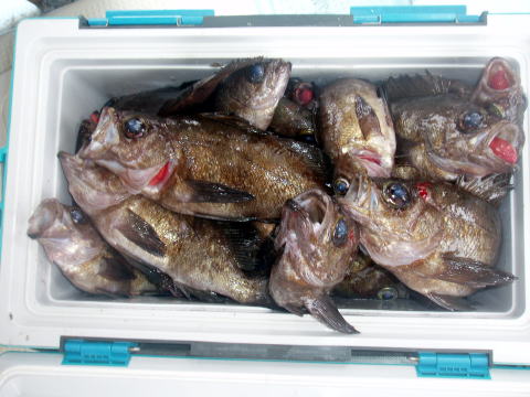 今日もメバル釣りで出船です。 初乗船のお客様も含めての出船です。 朝から今日はメバルの活性良かったです^^ 一時は右舷も左舷もダブル、トリプルでした。 しかも、サイズも尺が頭で良型ばかりでビックリ しました。 ただし、この時間帯にお1人だけ何故か 0匹・・・ 凄く落ち込んでおられましたが、後半は 慣れてこられて凄い追い上げで安心しました^^ 竿頭は30匹で昨日と似た様な釣果です。 今日はしっかり写真撮りました^^ 今回はほとんどの方がクーラー直入れだったので 代表で川本様のクーラー撮らせてもらいました。 左の画像はイケスのみの分です。 良方ばかり釣られる方、中型中心ばかりの方と 釣果に差が出てしまいましたね〜 皆さん今日はありがとうございました。 |