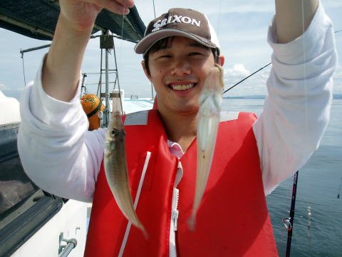 今日は近場でのんびりキス釣りで出船しました。 土曜日にしては少人数で出船です。 天気は曇天で超〜涼しくて気持ち良かったです。 キスのサイズも今回は良好! ただポイントムラがあり、中型中心やら、大型中心 とかに分かれた感じでした。 しかし爆釣〜はなく、釣られた方で50匹位でした。 8月いっぱいまで楽しめますのでご家族又は 気の合った仲間内でキス釣りいかがでしょうか? 今日乗船のお客様お疲れ様でした。 |