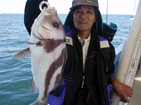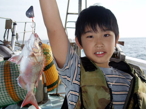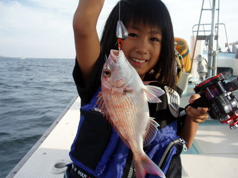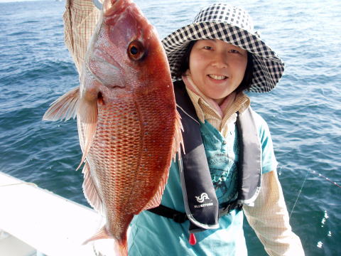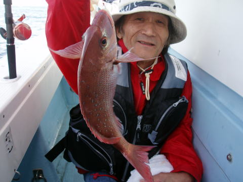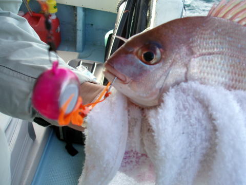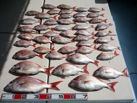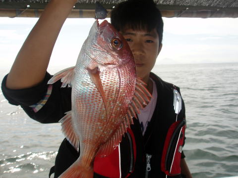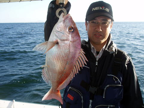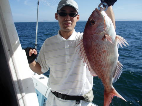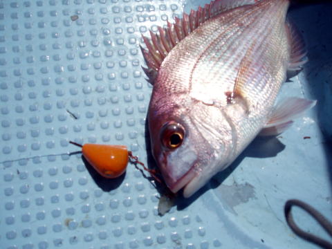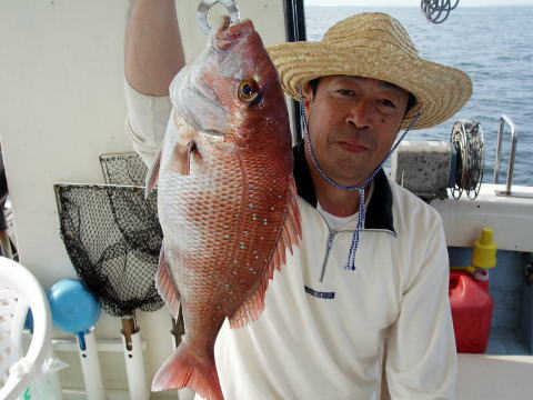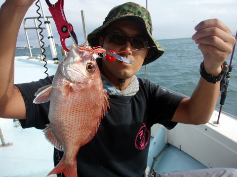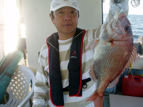 | 尚人丸初乗船の石井様 鯛ラバでまずは真鯛GET ピンクネクタイ ![]() 2011年 9月18日 |