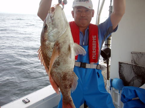 尚人丸初乗船の一杉様 ド〜ン!見事に釣り上げました^^ 75cm、6,8kg イエローネクタイ、鯛玉ケイムラ仕様 ![]() 2011年 9月18日 |