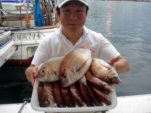 初乗船の玉名のS様。 後半の3時間で一気に13匹!お見事^^ 今度は大鯛目指して下さいね〜 ![]() 2011年 9月16日 |
