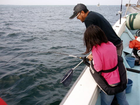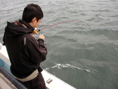 | 初乗船の青木様 巻き巻き巻き・・・ヒット〜 ![]() 2011年 11月3日 |
