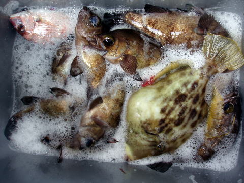 デカアラカブ4兄弟{1匹30cmのアラカブは関口様のクーラーの中}![]() 2011年 11月26日 |