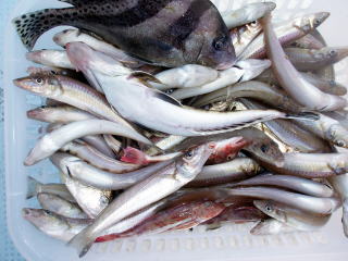 キスをメインにメバル、ヒラメ、アラカブ、その他が釣れます。