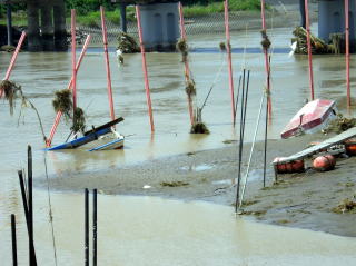 平成24年7月14日 記録的な大雨で矢部川も大変な事になってます。 |