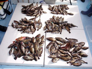 平成20年3月22日{大潮}の釣果 この日はメバル30cm頭に209匹! 竿頭 51匹 二番手 40匹 三番手 36匹 毎回この調子なら楽しいのですが・・・ |