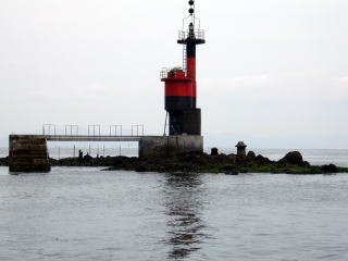 三池港灯台です。 横の堤防は大型台風で壊れてしまいました。 自然って怖いですね・・・ |