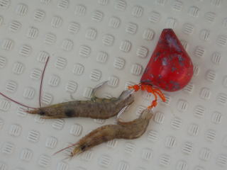 ガンバ{トラフグ}釣りの仕掛けです。 釣具店には売ってありません!! 手作り仕掛けです。 竿釣りでも十分楽しめます。 {エビエサ使用} |
