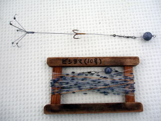 船長が使ってる手釣り仕掛けです。 ラインはトトマスター8号を使用 してます。 中オモリ〜ハリス{6号}〜オモリ。 {6号} {マダイ釣りの手釣り仕掛け} |