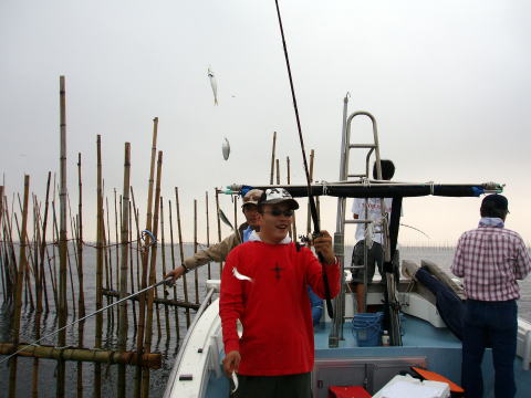 朝、大雨が降ってたので時間をずらして 三池港を朝7時に出船! 今日は親子で来て下さいました。 |