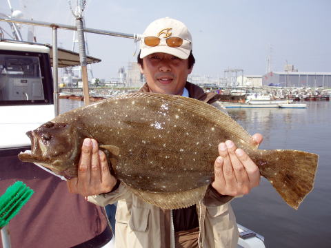 久々のお客様です。 以前は釣りニュース の取材の時も大型メバルを釣って新聞の 表紙に載りましたね! 今回も大型ヒラメ! 尚人丸との相性がいいのかな・・・ 冬場は玄海灘にヒラメ釣りに行かれるそう ですが、有明海にも こんなヒラメがいる のかとビックリされてましたね〜 実はいるんですよ・・・ ヒラメ 4,5kg |