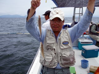 三池港を6時出船! 前回2回ともシケ中止で今日は やっとキス釣りに出れましたね〜 大雨の後の影響で底濁りがひどくて 入れ食いとはいかなかったが、 ボチボチ釣れましたね。 磯釣りもいいですけど、船もたまには いいでしょう!? |