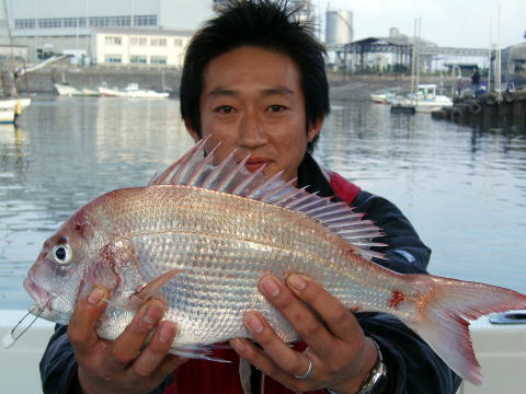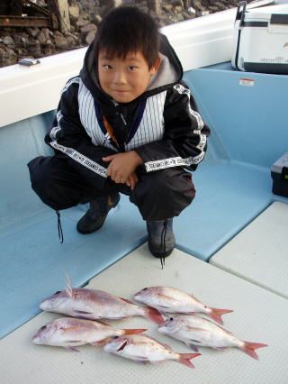 テンヤ釣り初挑戦で みごと この釣果!! 船長ビックリしました。 他のお客様もビックリしてた・・ なんと小学3年生との事・・・ 前半、風が強くて心配したが びくともしないこの根性! 頭がさがります・・・ 凪だったら、もっとマダイを 釣ってたかも!! 又、遊びに来てね〜 船長待ってますよ。 |