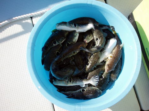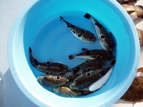 今日は半分ほど船酔いでダウン でしたね・・・ でも合間にトラフグGET 良かったです。 |