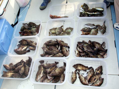 今日からメバル釣り開始です。 今日は大メバルポイントを 狙ってみましたが、不発でした・・ 小型のメバルはあがったけど。 今年も最初は五目釣りでした。 メバル・・・39匹 カワハギ・・・35〜40匹 コショウダイ・・・9匹 その他・・・サンバソウ、シロギス トラフグ、ショウサイフグ コダイ、メイタ、アラカブ |