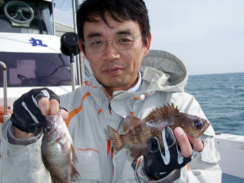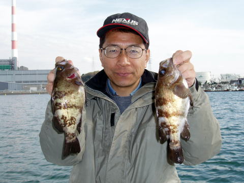 今日は昨日より若干水温も下がってましたが、まだ走りの 状態です。納得いく釣果ではないが昨日よりは良かったです。 残念ながら30cmオーバーも1匹もいません・・・ 今日はカワハギ釣りはしてません。メバル一本です。 今日は初めてのお客様{向浦様、前田様}が乗船され ましたが、有明海のメバルは型が良いばいと言われて ましたが・・・船長は30cm越えないと納得しません! もう少し水温が下がると数が増えると思います。 昨日より釣れたので良しとしよ〜^0^ メバル・・・28cm頭に31匹。 アラカブ・・・3匹。 ハクラ・・・1匹。 チヌ・・・2匹。 その他・・・アイナメ、ウマズラ、フグなど。 |