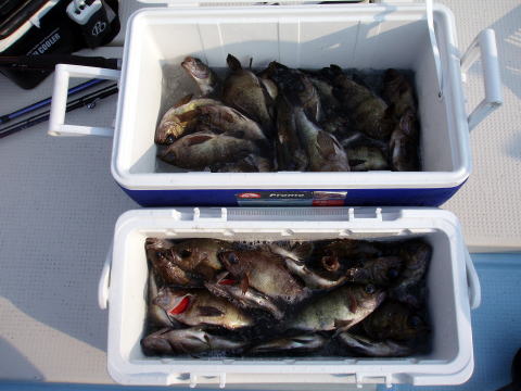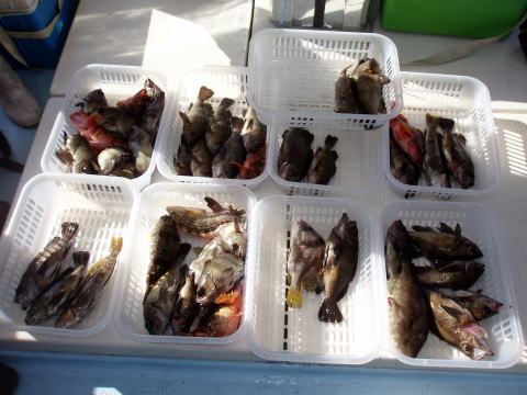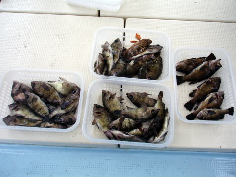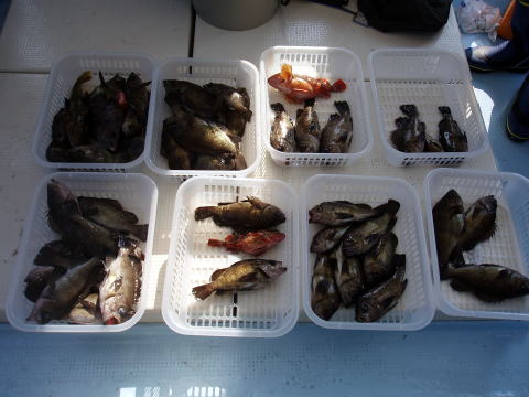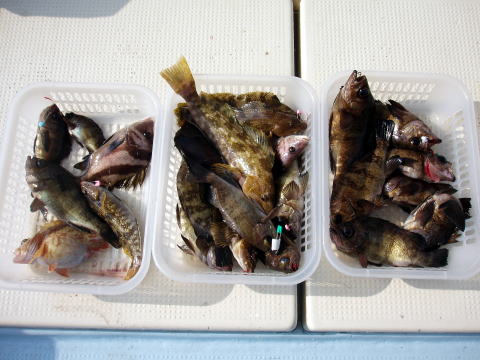 一昨日はクラッチ系のトラブル、昨日はシケで出船 中止、今日は朝から凪の出船となりました。 エンジン快調!波は無し!天気は最高!だが 今日はどこ行ってもメバル食いません・・・ まったく潮が動きません。 一日中潮とまり状態。 ダブル、トリプルもなし。 ポツリ、ポツリしか当たらない。 おまけに普段釣れないウマズラも釣れたりして・・・ 今日は厳しい一日となりました。船長、気合ばかりが 先走り・・・ やはり自然には勝てませんでした。 今日は皆さんゴメンナサイ。 メバル・・・29cm頭に 33匹。 アラカブ・・・5匹。 アイナメ・・・3匹。 ウマズラ・・・2匹。 その他・・・コショウダイ、フグ、コダイ、ベラなど。 |