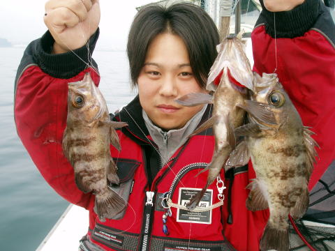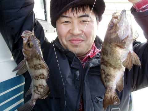 今日はゆったり平日出船でした。 乗船された内お二人はメバル釣り初挑戦との事 でしたが潮が早い時の釣りに戸惑われたみたい ですね〜 結局、潮とまり前後の時間帯しか 残念ながら釣果が出ませんでした。 慣れない方は小潮周りがお勧めだと思います。 しかし数は少しでしたが型は揃ってましたね。 今日乗船された増山様3人グループの、どなたか わかりませんが忘れ物がありましたよ。エサ入れ です。 ご連絡下さい。 いよいよ次の小潮から遠征行きます。 2月10日{土曜}の小潮から出船予定です。 これからは近場は行きません。尺オーバー狙い で、これから気合入れての出船です!! メバル・・・28cm頭に 14匹。 アラカブ・・・26cm 1匹。 アイナメ・・・38cm頭に 5匹。 コショウダイ・・・3匹。 |
