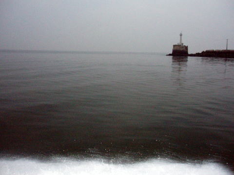 | 2007年 2月11日 | 今日は朝から風速9mの風! しばらく様子を見ようと港でお客様に 待ってもらいましたが風はおさまる気配 なし・・・ 残念ながら中止しました。 西の風なら出船したのですが・・・ |