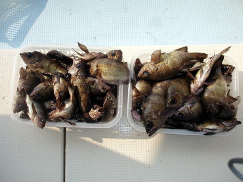 今日も、ゆったり平日出船でした。乗船されたお客様は 松下様、上田様の2名。 朝から霧が出てて幻想的な 雰囲気の中、目的地向けて出船! 土曜日から遠征に 行こうと思ってたが急遽変更して今日行きました。 今日のお客様2人ははっきり言ってメバル釣りがうまい! {服装から違う・・・}いつもは人によって釣果に差が出て しまうのだが今日は御二人とも良い腕持ってましたね〜 その証拠に今日はアラカブ、アイナメが1匹も釣れてない。 タナ取りが違うのだ! 根掛かりも少なくて瀬を上手に 交わして釣られる。 おみそれ致しました。 特に上田様は型の良いメバルばかり釣ってましたね〜 又のご乗船お待ちしております。 メバル・・・29cm頭に ジャスト60匹。 外道・・・1匹もいません。{100%メバル} |