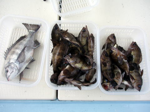 今日も平日出船でした。無津呂様グループの 3人でのご乗船です。 今日は皆さん終始根掛かり との戦いで凄く苦労されてました。 魚影の反応は あるのですがメバルが喰う前に根掛かりされて仕掛け が足りるか心配でしたよ。 今日は思う様な釣果は 出ませんでしたが、これに懲りず又リベンジお待ちして おります。 皆さん今日はお疲れ様でした。 メバル・・・29cm頭に 24匹。 チヌ・・・41cm 1匹。 その他・・・アイナメ、フグ。 |