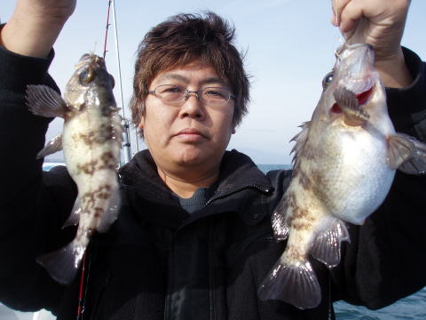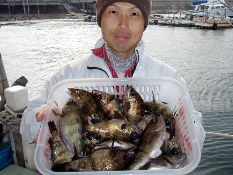 今日も平日ゆったり乗船の出船です。 今日の中潮は潮が動かない・・・ 困った・・・ 後半は深場で大メバルを狙ってみました。 まだ数は あがりませんでしたが、型揃いで皆さん大喜び^0^ しかし今日も、ぬっかったです。 ほんとに12月なんだろ かおかしな気候です。 雨も降らず風も無く穏やかな一日 だったので良かったのですが。 今日も釣果に差があり、 山下様の1人舞台でした。オマケに尺メバルも2匹混じって 余裕の二桁です。 山下様はタナの取り方が非常に上手で おみそれいたしました。 明後日から雪で大荒れ予報! 寒波明けの水温が安定したメバル釣り。待ちどおしいですね。 今日乗船の皆さんお疲れ様でした。 メバル・・・30cm頭に19匹。 アラカブ・・・2匹。 真鯛・・・1匹。 キス・・・2匹。 その他・・・コショウダイ、セトダイ、フグ、ベラなど。 |