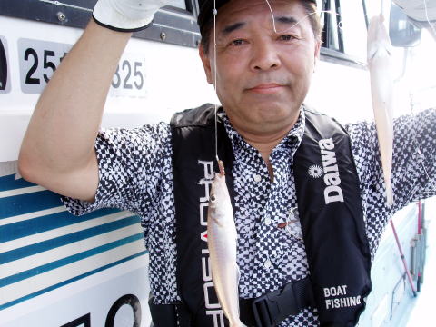 今日のお客様は野田様1名で、キス五目とのご要望で 出船しました。 今回はポイントを変更してのキス五目 でしたが、なんと一投目から入れ食い状態です! 潮とまり以外は、ずっと釣れ続きました。 野田様曰く{今日は忙しかばい}とのお言葉^0^ 今回も五目ですので色んな魚が釣れました。 キス、真鯛、コショウダイ、マゴチ、ホウボウその他 色々・・・ キスだけで27cm頭に60匹以上釣られて ました。 11時になって、まだこれからだと言うのに 野田様は{これだけ釣れれば十分ばい。帰って魚を さばくのに大変ばい。船長帰ろ〜}との事。 今日は超〜早上がりしました。 野田様、大満足の 1日でした。 野田様お疲れ様でした。 |