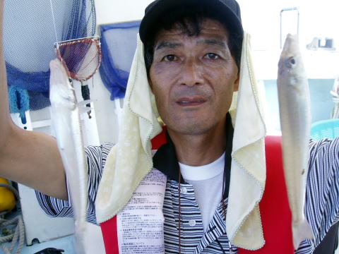 今日はヒラメとキス五目のリレー出船でした。 今回はメインでヒラメを狙いましたが、どう言う訳か 渋すぎます・・・ あちこちのポイントを走り回りましたが 今日は姿を見る事が出来ませんでした。 沖あがり前の一時間はお土産のキス五目釣りやりました キス、コチ、コショウダイ、その他のお土産GETです。 今日も暑かったですが大型テントの下のお客様は{テント の下は天国ば〜い}との事^^ 風が吹いてくると、もっと 涼しいのですが・・・ 広田様は前回はスズキの71cmを GETでしたが今回は残念です。 今晩はキスの天ぷらで 我慢して 下さい・・・暑い中皆さんお疲れ様でした。 |