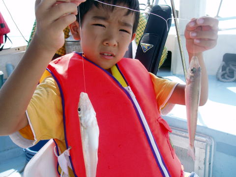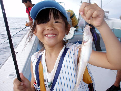 今日は夏休み限定のキス五目チャーター出船です。 お客様は3家族{山本様、福岡様、金納様}です。 今日は涼しい風がふいて空も曇り空で過ごしやすい1日 で助かりました。 お父さん達も子供さんのお世話で 忙しかったですね^0^ でも子供さんにとって夏休みの 良い思いでになったと思いますよ。 魚も色んなのが 釣れました。 キス、メバル、マゴチ、タコ、グチなど。 今回も真鯛が混じるポイントを流したのですが今日は 姿を見る事ができませんでした・・・ 今晩は腹いっぱいキスの天ぷら食べれますね^^ 皆さん今日は乗船ありがとうございました。 |