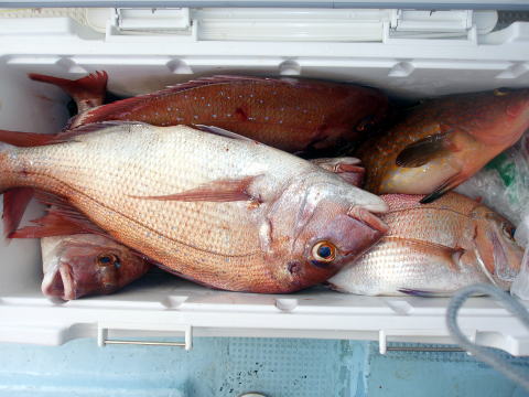 石田様クーラーの中![]() 2008年 9月6日 真鯛、アコウ、アラカブ、その他。下が見えません・・・ |
