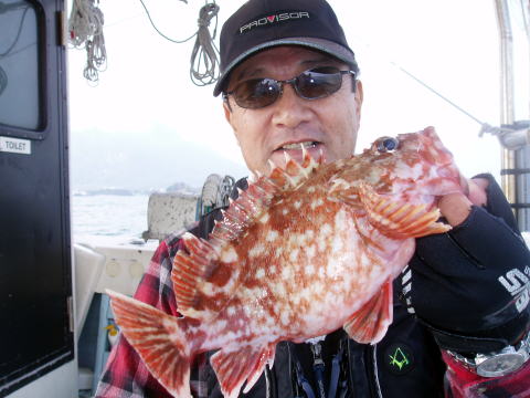 昨日の有明海は大時化{最大風速15m}でしたが今日は うって変わって朝からベタ凪^^ 今日は初乗船及び初挑戦 のお客様を含めメバル釣り出船しました。 初挑戦のお客様は要領がなかなかつかめなくて苦労されて ました。 後半は、何となくコツがつかめたよって言っておら れましたが、覚えるよりまずは慣れる事ですよ^^ 今回も釣果に差が出てしまいました。 この時期にしては マダイが今日は多かったですね〜 小型のマダイはリリース してもらいました。 今日は天気も良く風もなく気持ちが良い 1日で気持ちが良かったです。 皆さんお疲れ様でした。 PS:今日も軟竿2.7快調!短硬竿撃沈でした・・・ メバル・・・27cm頭に56匹。 アラカブ・・・27cm頭2匹。 マダイ・・・15匹。 その他・・・コショウダイ、セトダイ、キスなど。 |