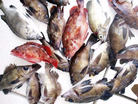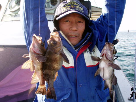 前日の夜キャンセルがはいりましたが今日はメバル釣り で出船しました。 出船前は風もなく凪でしたが港を出て 一気に風が出てきました。 風の様子を見ながら、まず は近場でのメバル釣り開始です。 でも風は強くなる ばかりです・・・ メバルの反応も魚探にはさっぱり・・・ 時化の為にメバルは根に入ったまま出てきません・・・ ベタ底狙いで下針だけしかメバルは釣れませんでした。 時化なかったら予定のポイントに行けたのですが今回は 残念でした。 今日は大型のメバルはいません。大石様 が釣られた25cmが最大でした。 メバルのトリプルも なかったです。 今日釣れた魚はメバル、良型アイナメ、 ハクラ、ホウボウなどです。 メバルは数があがりません でした。 自然相手の釣り。思うような釣果が出ず今日は 申し訳ありませんでした。 今回初乗船の3名様これに 懲りず又チャレンジお待ちしております。お疲れ様でした。 PS: 短くて硬い竿はメバルがはじきます!今日もメバル を釣られた方はムーチング竿使用の方だけでした。又、 置き竿!これもメバルは釣れません。 根を交わしながら 誘って誘って落とし込み!です。 メバル釣りは人によって 凄く差が出る釣りです。奥が深いんですよ・・・ |