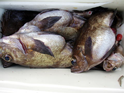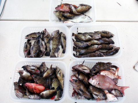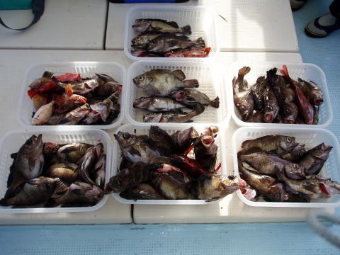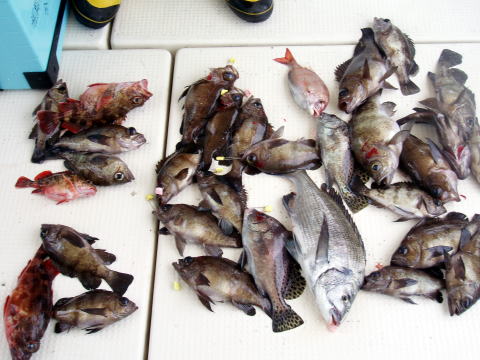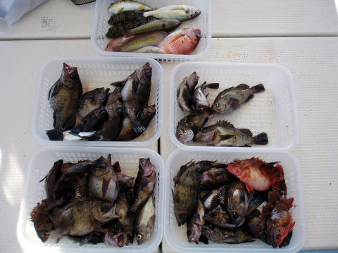今日出船時は凪でしたが、ポイントは南西の風のウネリで 皆さん非常に棚が取りにくかったみたいですね。 今回も釣果に差が出てしまいましたが、初挑戦の方は 根掛かりで苦労されてたみたいです。慣れてくると根掛かり も少なくなると思います。覚えるより、まずは慣れる事です^^ 今日もヒラメの姿は見る事が出来ませんでした・・・ 今日は各自クーラーの中にメバルを入れられたので代表で 内田様と山口様のクーラーの中身を写させて頂きました。 お二人とも二桁オーバーでした。 今日乗船の皆様お疲れ様でした。 |