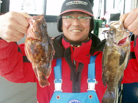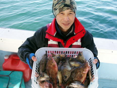 今日は平日、少人数での出船です。 今日は昨日みたいにバリバリのよか反応はなくあちこち まわっての拾い釣りとなってしまいましたが、なんとか これだけのメバルを釣りました。 最近尺メバル見てない です。 昨日も3cm足りずの27cm・・・ 今日も尺メバル 見れませんでした。 一箇所のポイントで爆釣〜これが 一番良いのですが今日はシビアな食いでした・・・ 宮川様は良型のアラカブ釣って喜んでおられて良かった です^^ 西野様も今日は久々の乗船でした。 前半は 苦労されてましたが後半は頑張りましたね^^ 二籠合わせてメバルがジャスト40匹でした。 太っ腹のアラカブも3匹混じりました。 今日は天気も最高に良く小春日和で気持ち良かったです。 今晩は美味しいメバル、アラカブとご賞味下さい。 お疲れ様でした。 |