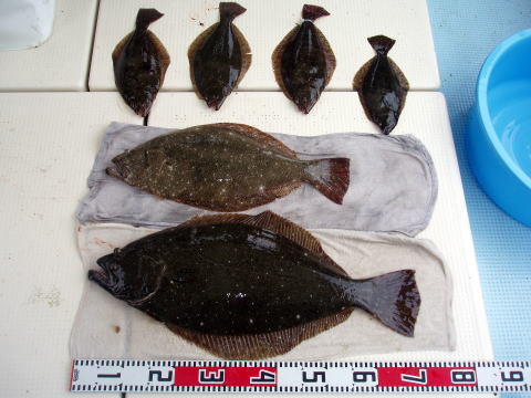 今日は最初に予約されたお客様がヒラメ、キスのリレー を希望されたので今回は両方狙いです。 キスをメイン に釣りたいとの事で、まずは朝2時間だけヒラメ釣りを やりました。 後半は沖上がりまで深場のキス釣りです。 今日尚人丸でヒラメ釣り初挑戦の北島様がヒラメ、マゴチ キス共に竿頭でした。 今晩はみんな集まって宴会だ そうです^^ お勧めはマゴチの刺身ですよ〜 マゴチは特大サイズで、かなり引き込みましたね〜 沢山の刺身が取れそうです。 港に帰るまで天気も良く風もなくベタ凪で良かったばい・・・ 今日乗船の皆さんお疲れ様でした。 現在の釣り物は {1}・・・ヒラメ {2}・・・キス五目 {3}・・・ヒラメ、キスリレー の三種類で出船しております。 最初のご予約のお客様のご希望で釣り物を決めます。 |