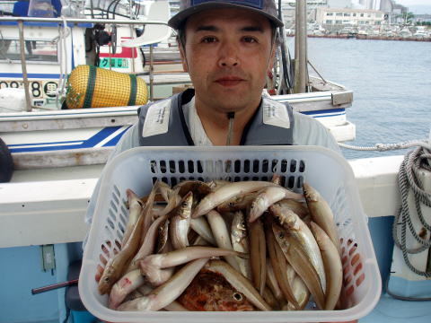 今日からキス五目釣りです。 お客様は草野様と河野様 親子、計3名です。 キスのサイズは文句なしの超大型 で釣ったお客様も有明海のキスはデカイね〜と絶賛です が、数が納得いきません・・・ 1人30〜50匹位釣れない と、きのどっかです・・・ キスも若干遅れ気味みたいです。 キスの食いが悪いので、合間にアラカブ釣りもしました。 キスは、あと一潮待ってみます。 その頃には良いかと 思います。 よって明日はアラカブの数釣りに変更となりま した。 今日も天気も良く、海も穏やかで気持ちが良い1日 となりました。 皆さん今晩はジャンボキスの天ぷらと アラカブの煮付けで楽しんで下さいネ。 お疲れ様でした。 |