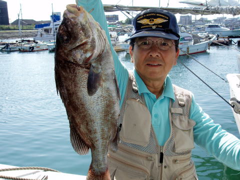 雨が降るからキャンセルしたいとの事で1人キャンセル が出ましたが、予定通り格安真鯛出船しました。 今日のお客様は中島様、無津呂様と可愛いお孫さん の小人数で出船です。 前半はいつもと違ってヒラメと 真鯛両方狙えるポイントから攻めてみました。しかし ヒラメの活性なし・・・ あきらめて真鯛のポイントに移動 〜 中島様も無津呂様も良くシャクッてます^^ その調子ですよ〜 頑張ってシャクっただけ釣果は出ま すよ〜 小型ばかりだったので新規のポイントを狙った ら刺身サイズの真鯛が連ちゃんで2匹GET! ここのポイント明日も狙ってみよう・・・ 今日は出船から港着まで一滴の雨も降らず雨どころか 途中で青い空まで見えてきました。 気持ちが良い風も吹いてホント今日は涼しくて最高の 釣り日和でした。 しかし今回はグチの活性大でした・・・ 真鯛はお土産としては十分だと思います^^ 中島様、無津呂様今日はキャンセル無しの乗船、誠に ありがとうございました。 お疲れ様でした。 真鯛・・・1,3kg頭に19匹。 アラカブ・・・1匹。 シログチ・・・24匹。 |