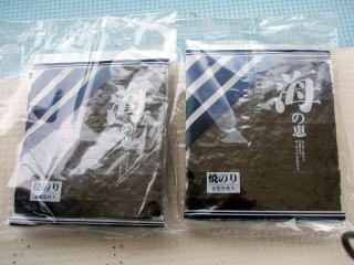 ![]() 2009年 11月24日 高崎様から海苔いただきました。ありがとうございました。 ご飯のお供に焼き海苔最高です^^ 今晩さっそくいただきます。 |