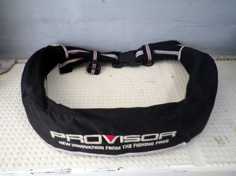 夏場は船内に常備してるライフジャケットは暑いです・・・ これは船長が腰に巻いてるライフジャケットです。 自分の命を守るライフジャケット、着用お願いします。 |