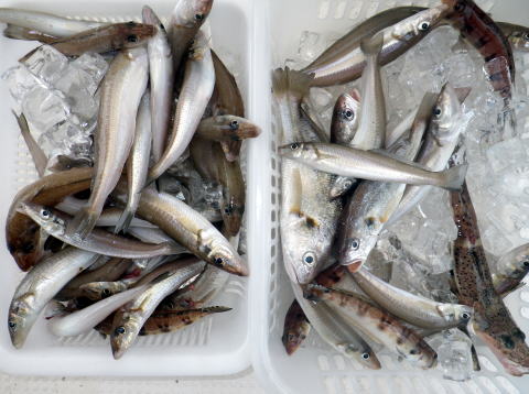今日は大人1名、子供2名の計3名でキス五目で 出船しました。 今回も超〜スーパーベタ凪です。 沖はまだ流木があるので流木を交わしながらの キス釣りです・・・ 子供さんはまだ8歳!でも しっかり釣ってます^^ リールの扱い方もしっかり してます。 棚もしっかり取ってます。 今日は大人のお客様が子供さんをしっかりサポート されて一日大変でしたね〜〜 写真はNGとの事で左の写真で我慢して下さい・・・ 今晩はキスの刺身、天ぷらと楽しみですね^^ 暑い中お疲れ様でした。 又のお越しをお待ちしております。 港に帰ってから今日は今年初の 皆さん大喜びです。 又しま〜す! |