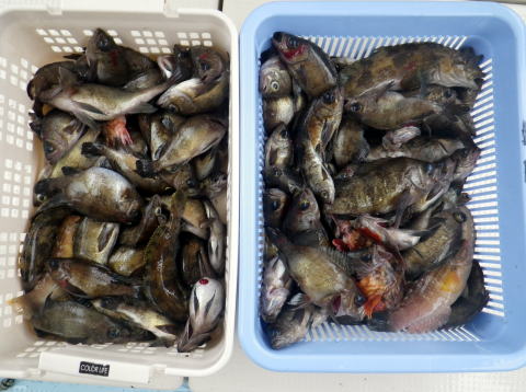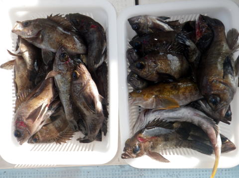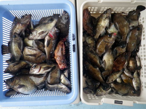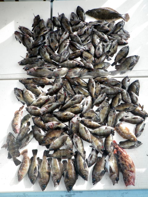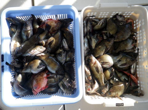 今日も朝から冷えましたね〜 今回はちょっとポイントを変えてみました。 朝からジャンボメバルが高活性! ある程度釣ったあと又ポイント移動〜 昨日活性が良かったポイントを攻めてみましたが 今日は昨日みたいな活性はなかったです。 結局、拾い釣りとなってしまいました。 んん・・・最初のポイントで粘った方が良かったかな? 釣果も人によって差が出てしまった一日でした。 アラカブは尺超えてました^^ アイナメもデカイです! 皆さんお疲れ様でした。 又のご乗船お待ちしております。 明日も頑張ります! |