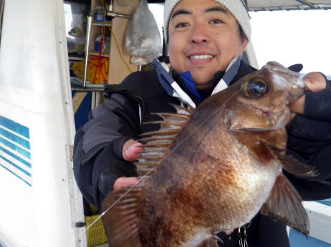 尚人丸初乗船及びメバル釣り初挑戦の永田様![]() 2013年 1月13日 |