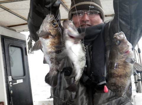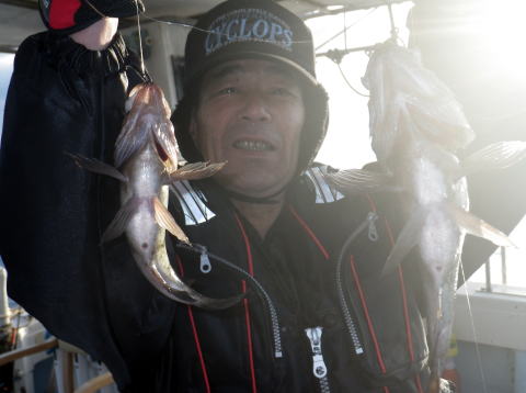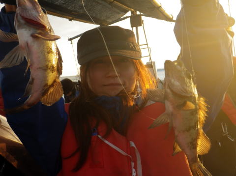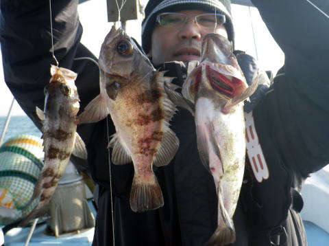 | 尚人丸初乗船及びメバル釣り初挑戦の三橋様 朝日を浴びて人生初のメバルダブル〜 ![]() 2013年 1月6日 |