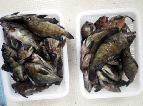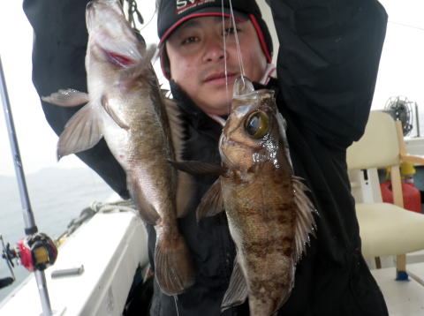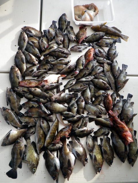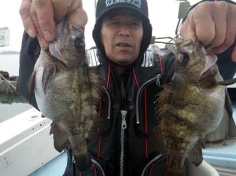 久々の平日出船です。 お客様は若松様ご兄弟2名です。 兄弟で仲良く魚釣り、良いですね〜^^ 頑張って下さいね。 メバルは数より型が欲しいとのご希望・・・ わかりました・・・船長頑張ります! 小型が若干まじりましたが、中〜大が釣れました! 一番ヨカサイズが28cm! 残念ながら尺はなし・・・ 場所ムラはありましたが良いポイントではダブルやら トリプルやらで賑わいました^^ ただ時合いが長続きしなかったですね〜 若松様、今晩は美味しいメバル堪能して下さいね。 刺身、煮付け、から揚げ、その他、どんな料理にも メバルは最高です! お疲れ様でした。 明日も頑張ります! 天気も明日までなか?? 週末の土曜、日曜は絶好の釣り日和になりそう ですね^^ 良かった良かった・・・ |