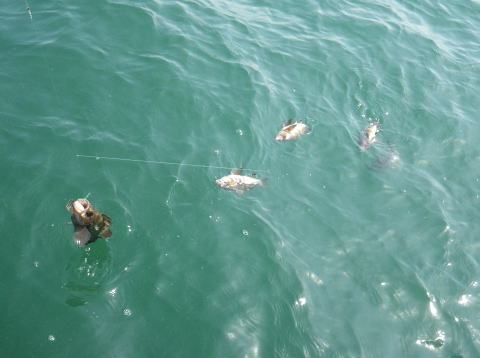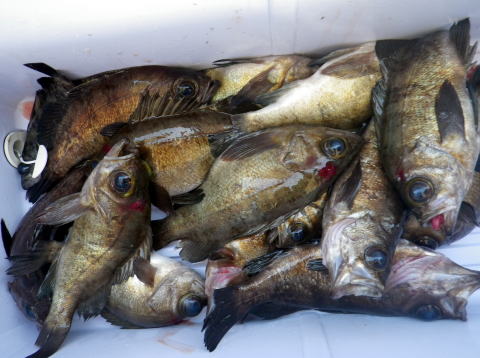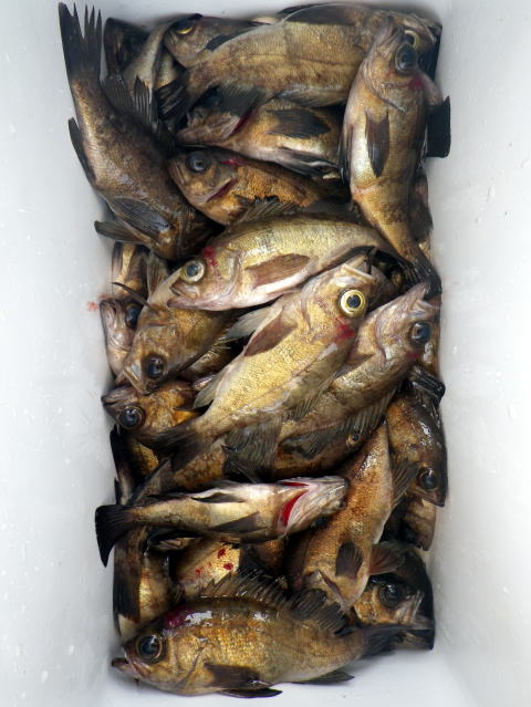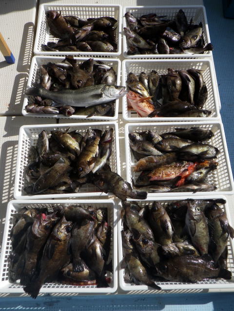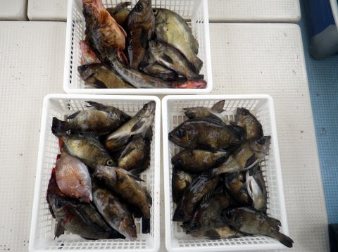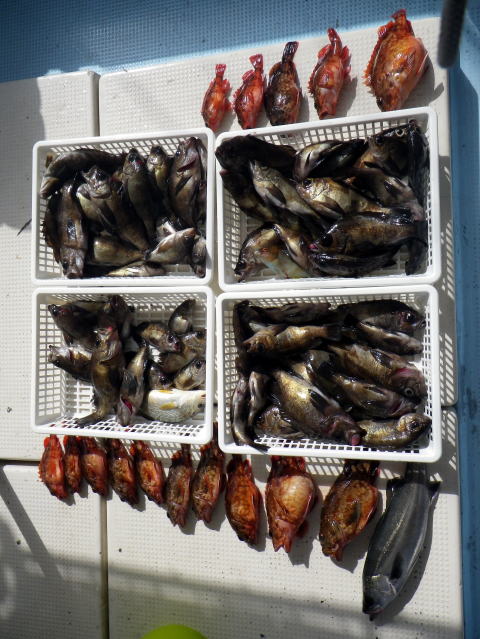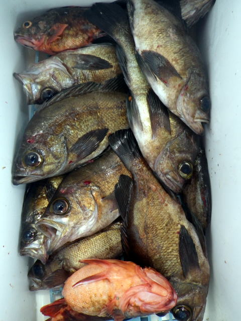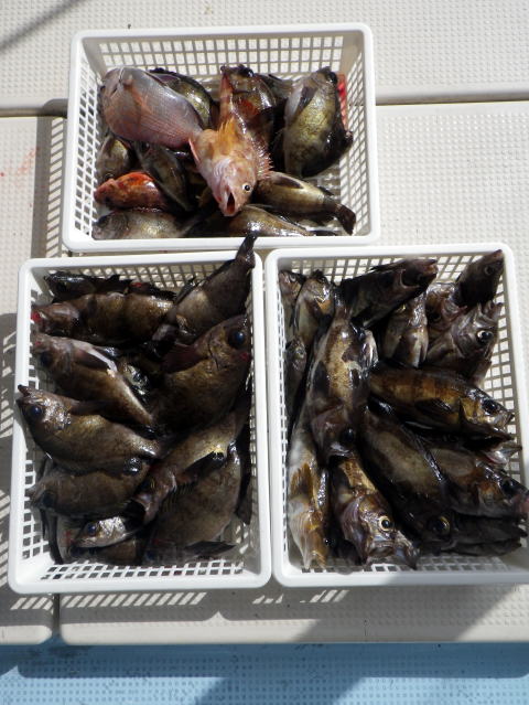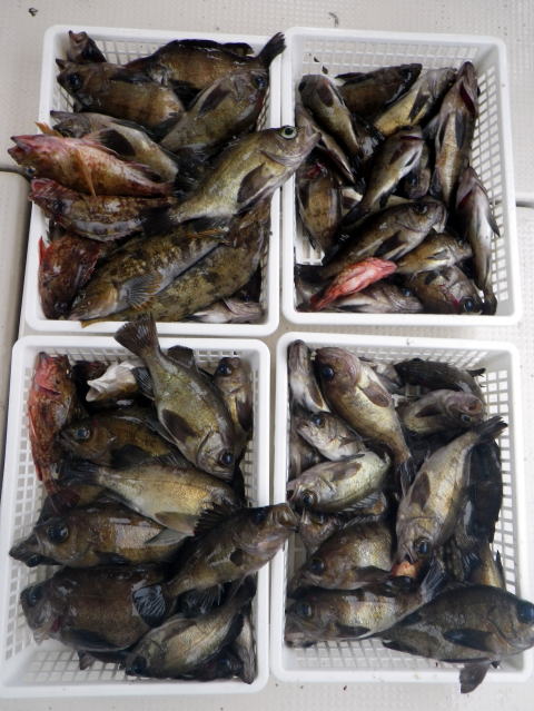 三日ぶりの出船です。 今日は常連様と初乗船のお客様でメバル釣りです。 今回は型狙いで挑戦です! 根が荒いポイントから深場のポイントと 色々と皆さんに挑戦してもらいました。 魚探に反応が出てる時の食いは凄いです! 反応が出てない時は静かなもんですが・・・ あるポイントで大型メバルが入れ食いしました! 浜田様に来たメバルは28cm〜31cmの5連! 本人も{今までメバル釣りしてて,こんな経験は 初めて}と・・・{最初で最後かもしれん}と 謙遜されてました^^ でも凄かったです。 あちこちまわって良いポイント見つかり良かったです。 しかし、仕掛けでメバルの大きさや数に差が出た 一日でした。 常連の草野様と浜田様は大型メバルばかりで 小さいメバルはほとんどいません・・・ 流石です。 草野様と浜田様から今日はメバル頂きました。 ありがとうございます^^ 船長、メバル大好きです。 今晩は刺身でビールです^^ そして煮付けと塩焼き・・・ 皆さん今日はありがとうございました。 明日も頑張ります! 明日は平日、少人数で出船予定です。 |